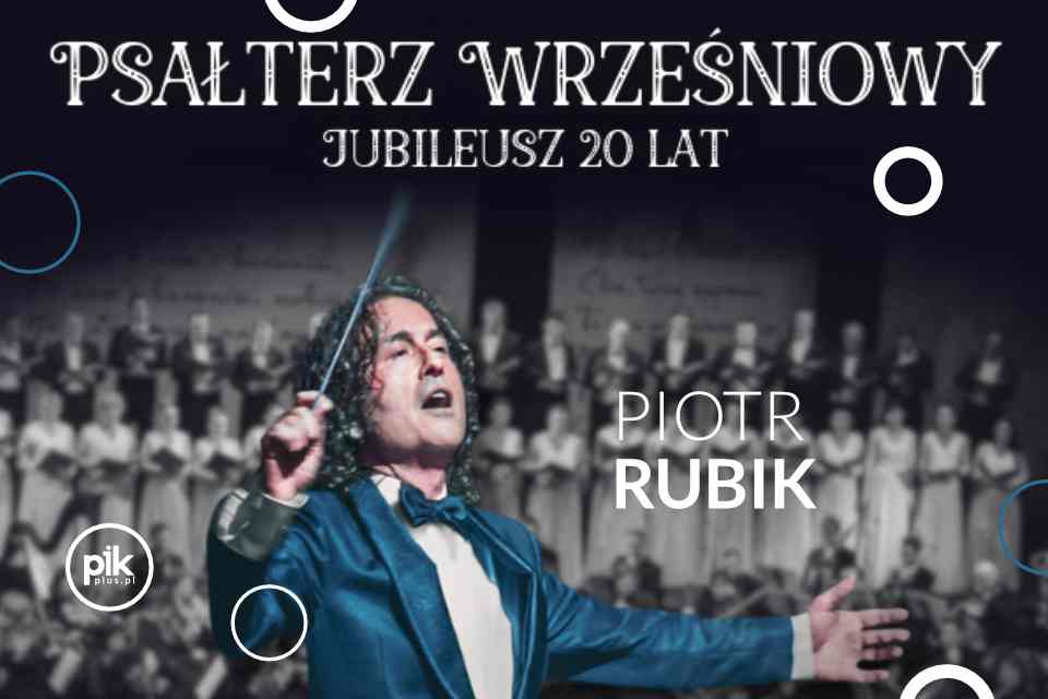 Zanurz się w niezwykłym świecie muzyki i emocji podczas jubileuszowego koncertu Piotra Rubika, z okazji 20-lecia powstania oratorium „Psałterz wrześniowy” – dzieła, które na trwałe zapisało się w historii polskiej muzyki współczesnej.